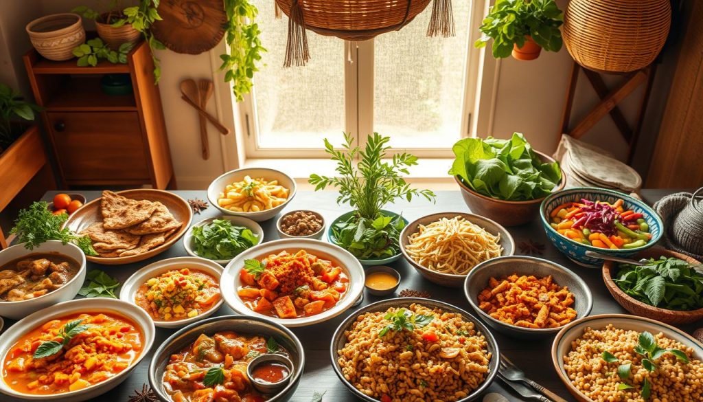 Exploring global vegan recipes keeps meal planning fun and interesting. Think about the flavors of different places and let your creativity guide you. This makes meals more enjoyable and helps our planet.